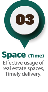 Space (Time) – Effective usage of Real estate spaces, Timely delivery.